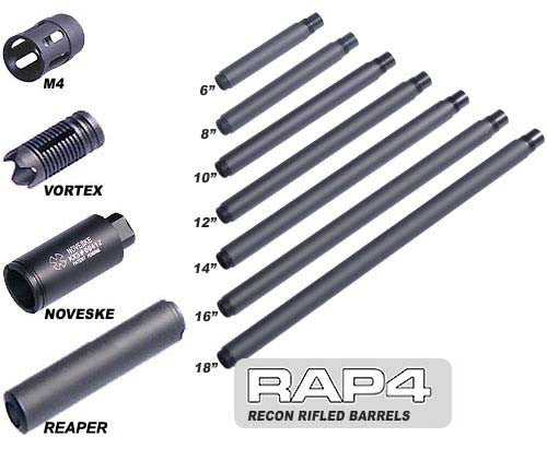 The high quality of these barrels will give you supreme performance on the field! These new Recon Barrels are designed on the outside for looks and engineered on the inside to greatly improve accuracy and reliability. Available in 6", 8", 10", 14", 16" and 18"