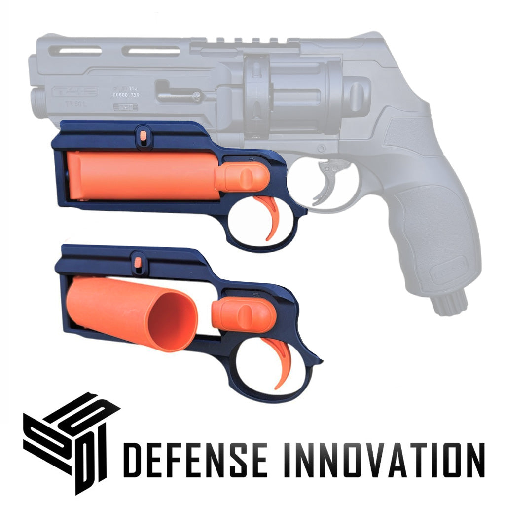 The Double Trouble Launcher is designed to enhance the functionality and versatility of the Home Defense Revolver. This launcher is compatible with Walther PDP pepper cartridges/P2P PGS Pepper Gel Cartridge and provides a reliable solution for defense and tactical scenarios. Simply mount it to the bottom Picatinny rail, load the cartridges into the break barrel (which pivots sideways for quick access), and you're ready for action. Specifically designed to perfectly complement the TR50/DR50, this launcher features a universal design that fits seamlessly onto any launcher with an under-mounted Picatinny rail. It can be attached to pistols, revolvers, shotguns, and rifles, provided they have sufficient rail space for installation.